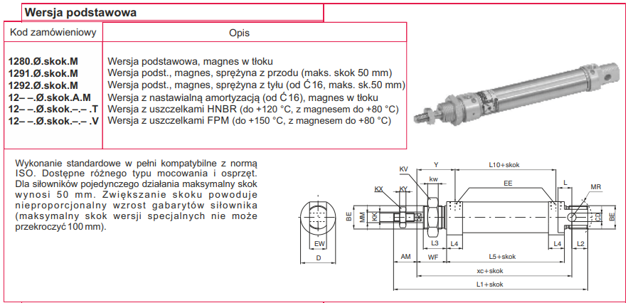 12xx.Ø.skok. .... T - wersja z uszczelnieniami HNBR