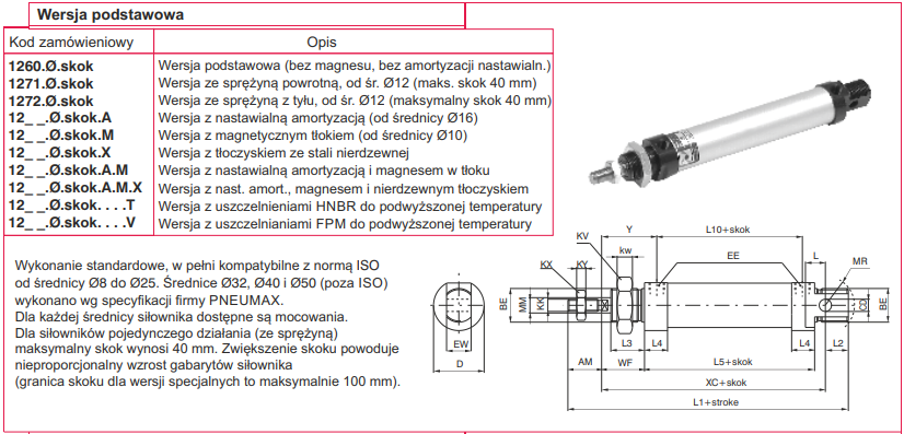 - Standard ISO 6432 - gwarantuje wymienność z innymi siłownikami o tej samej normie.
